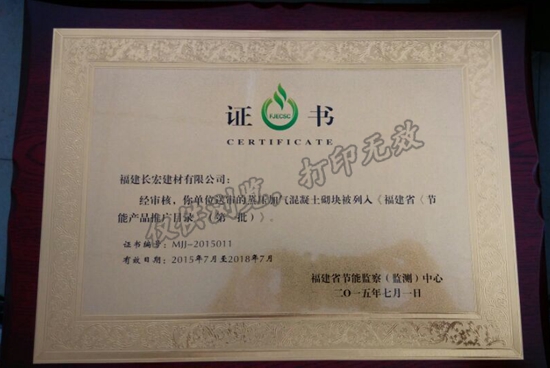 • 2015-01-28福建省新材辦通過(guò)我公司“蒸壓加氣混凝土砌塊”新材產(chǎn)品認(rèn)定